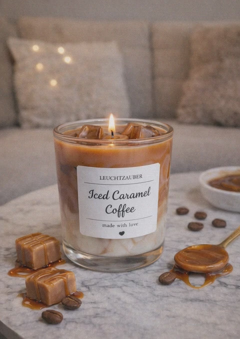 Mach es dir gemütlich mit der Iced Caramel Coffee Duftkerze – süß, warm und einfach zum Wohlfühlen. 🕯️💛
